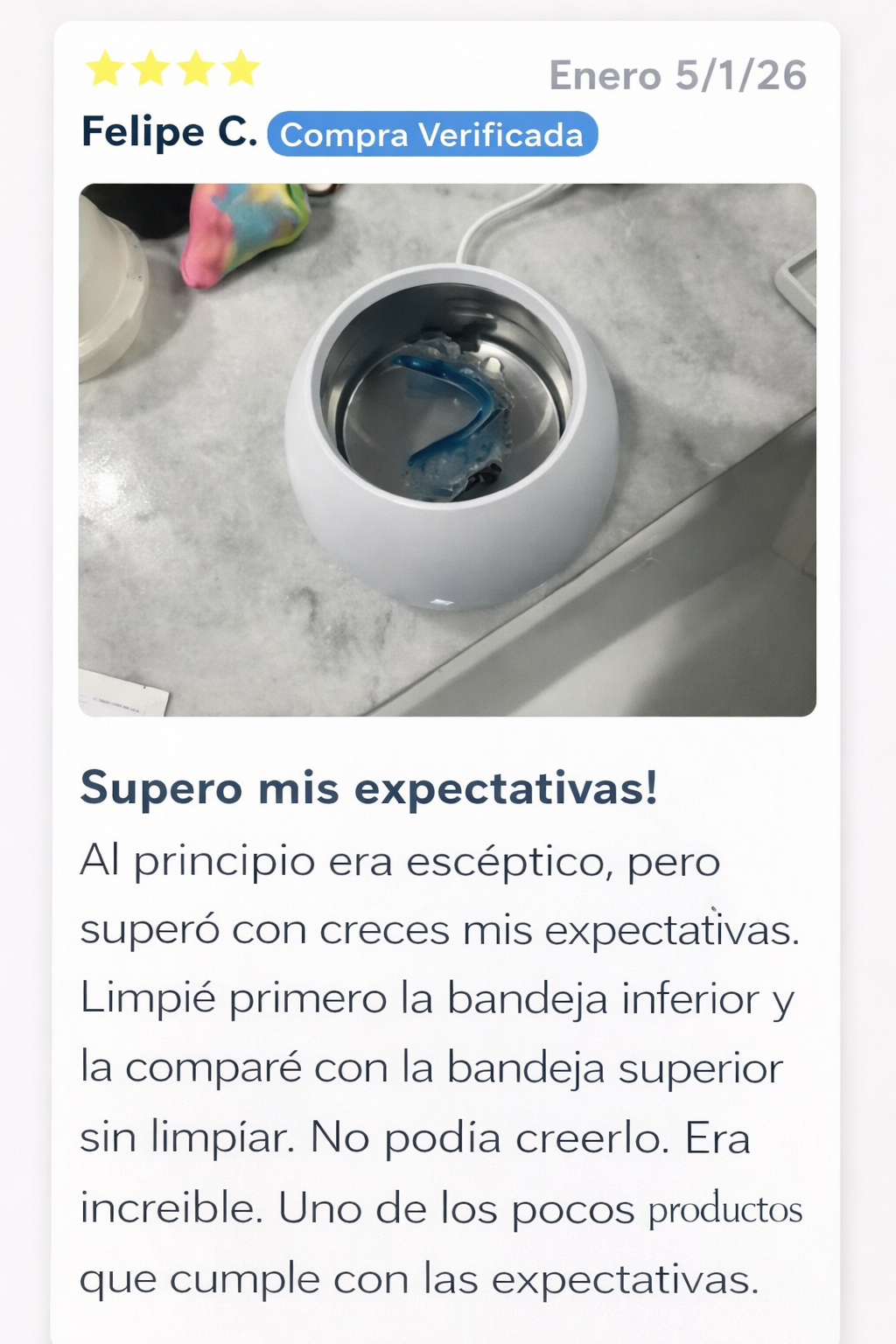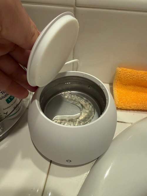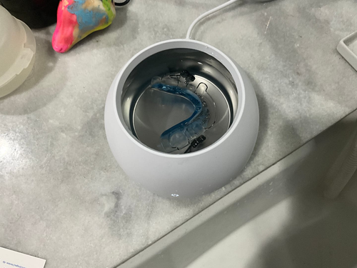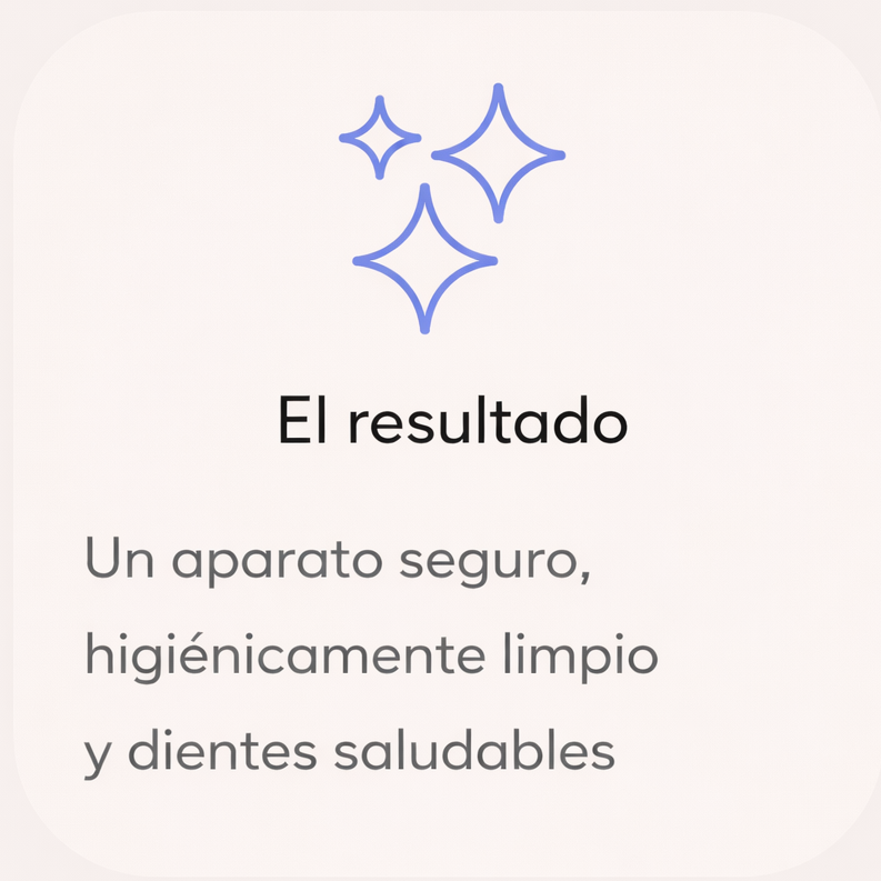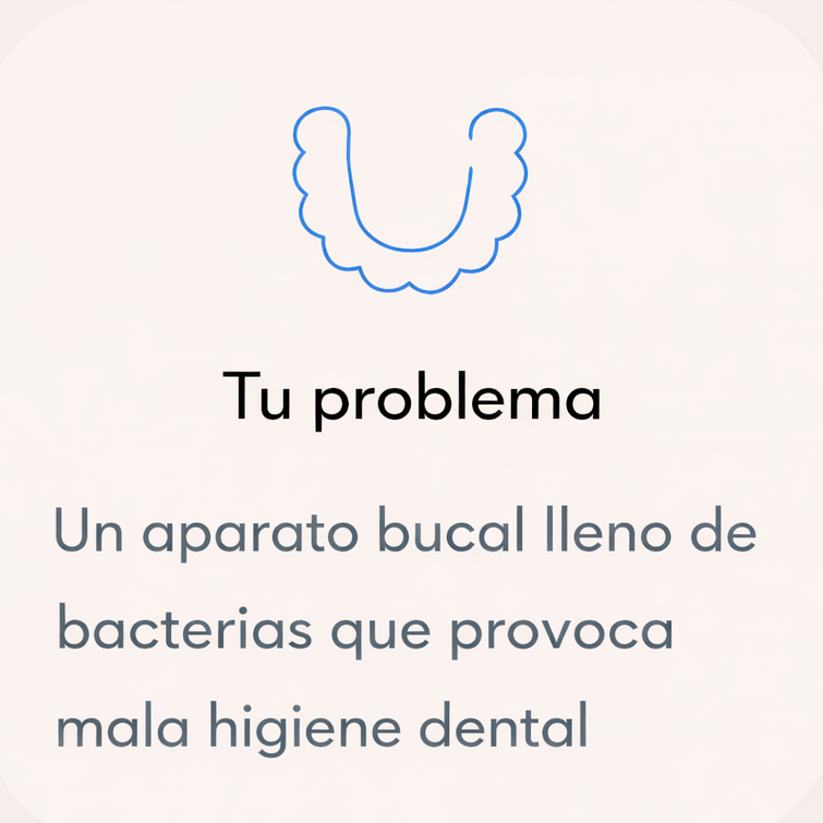Usar solo una pastilla limpiadora es como cepillarse los dientes con pasta de dientes, pero sin cepillo. Las pastillas eliminan algunas bacterias del aparato, pero los químicos no penetran más allá de la superficie. Las bacterias y la placa profundas permanecen, dañando tu salud física y dental, además de mantener el aparato turbio y sucio.