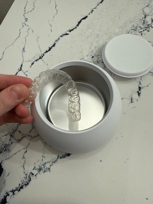Recupere su aparato dental limpio y reluciente y enjuáguelo. Simple